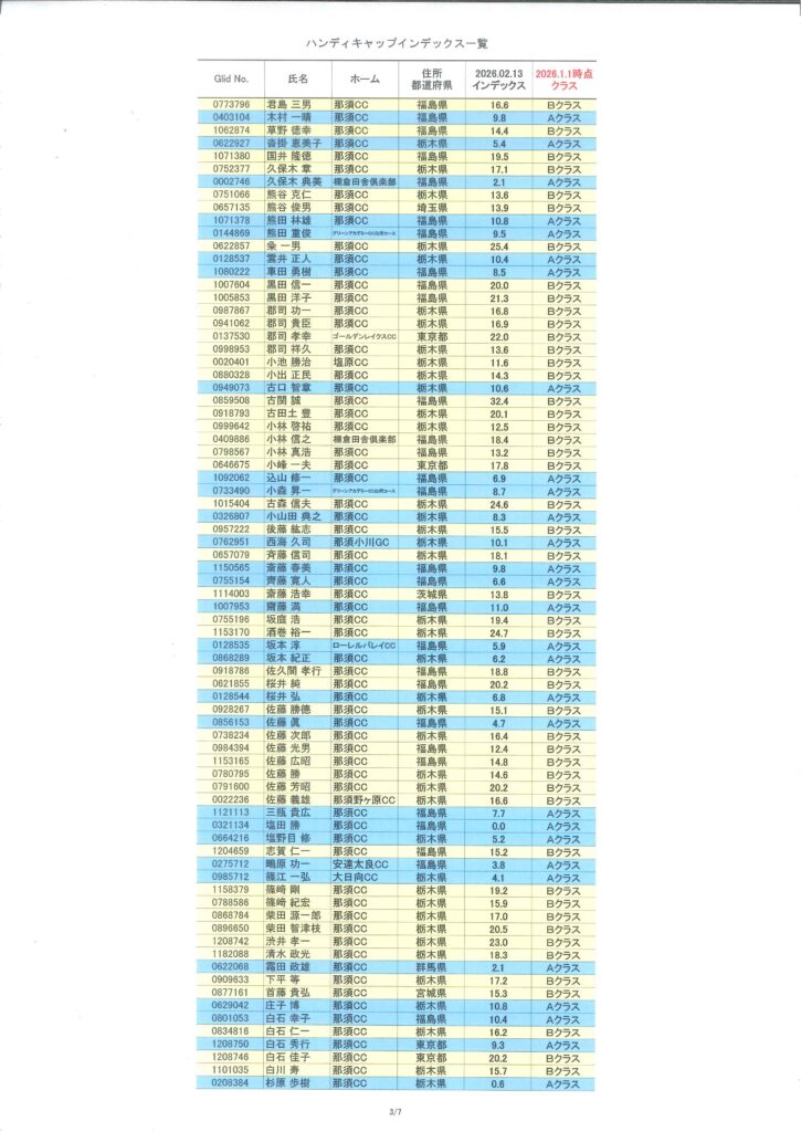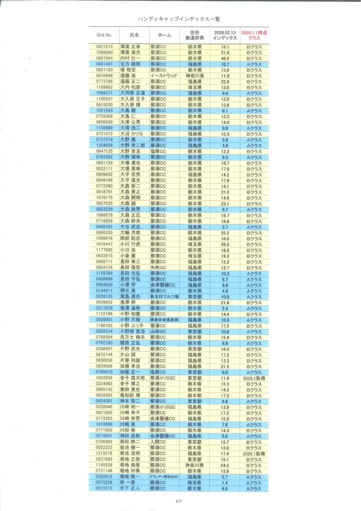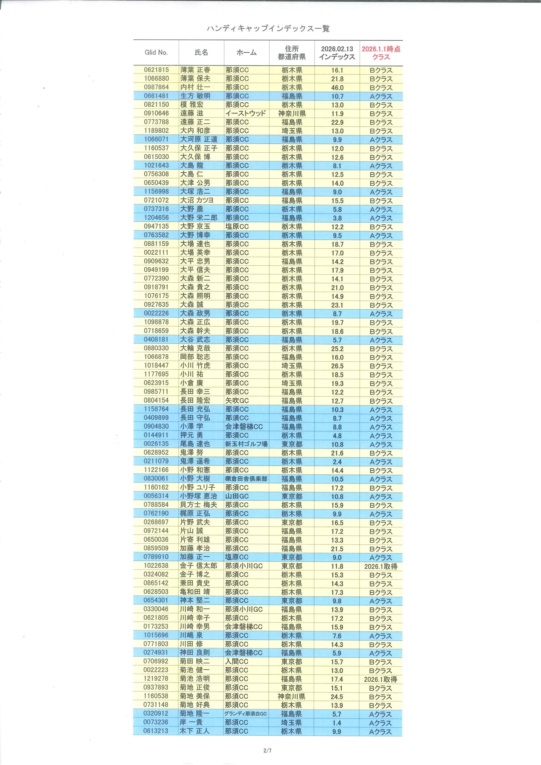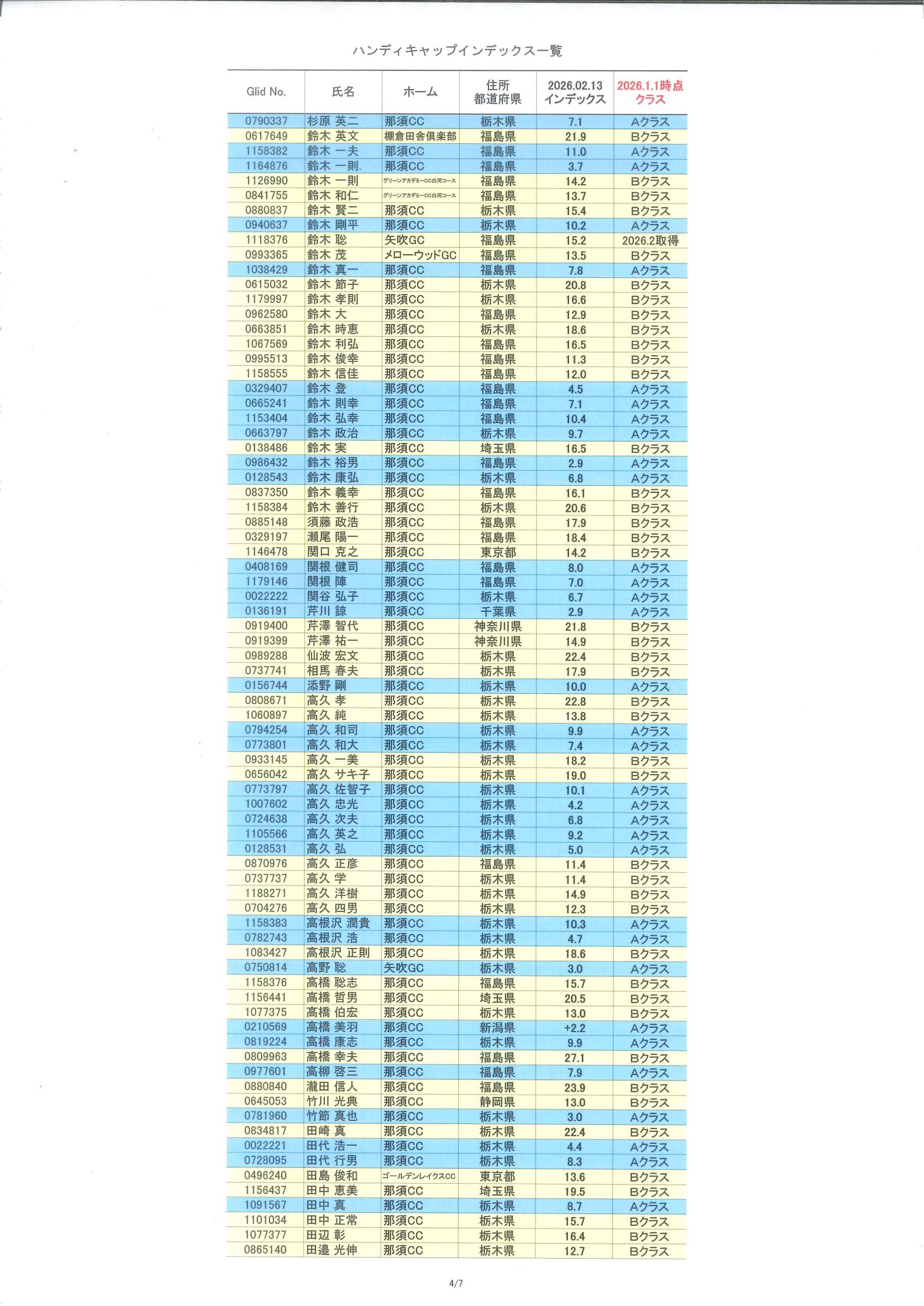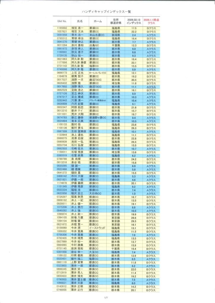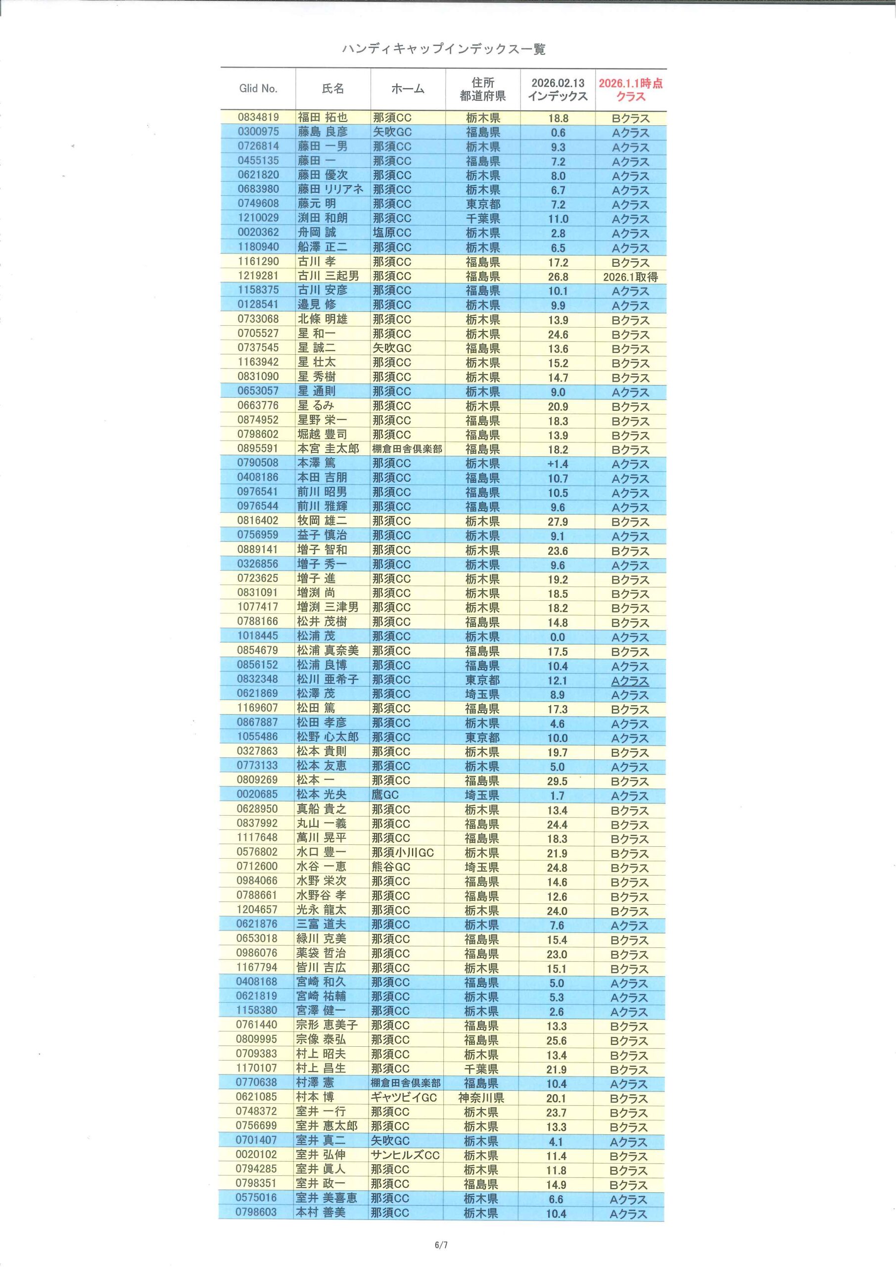 2026年2月度HDCPのお知らせ(2/13時点) 2026/02/13 【HDCP改定】※2/14再送 2/13時点でのHDCPは以下のようになり、2/20・2/22の月例杯のHDCPとなります。 « 前の記事一覧へ戻る