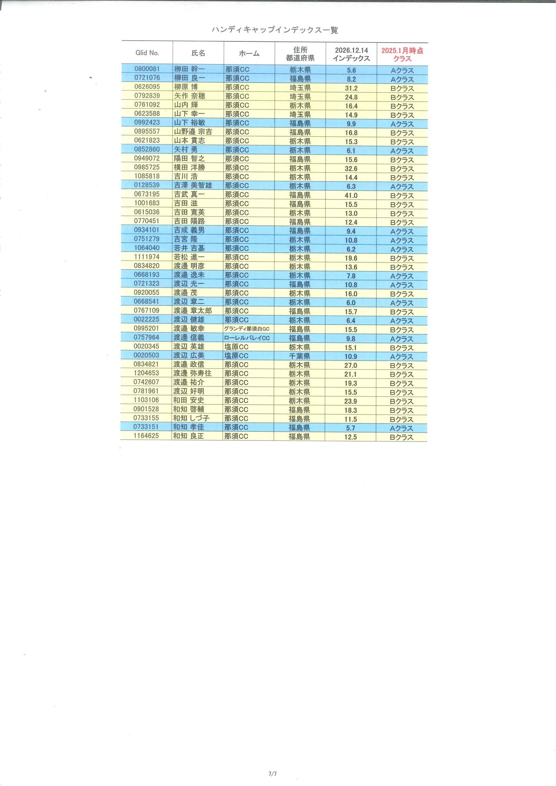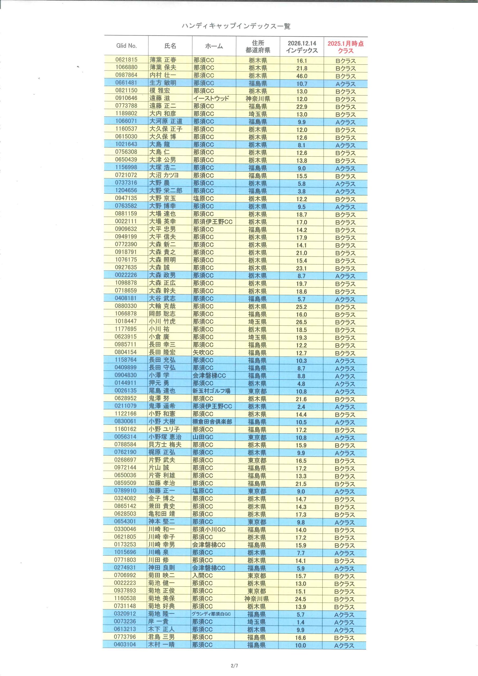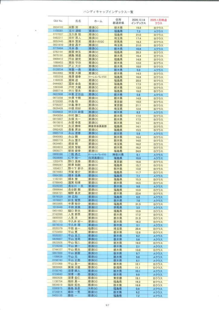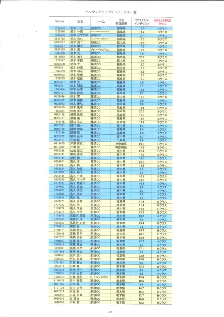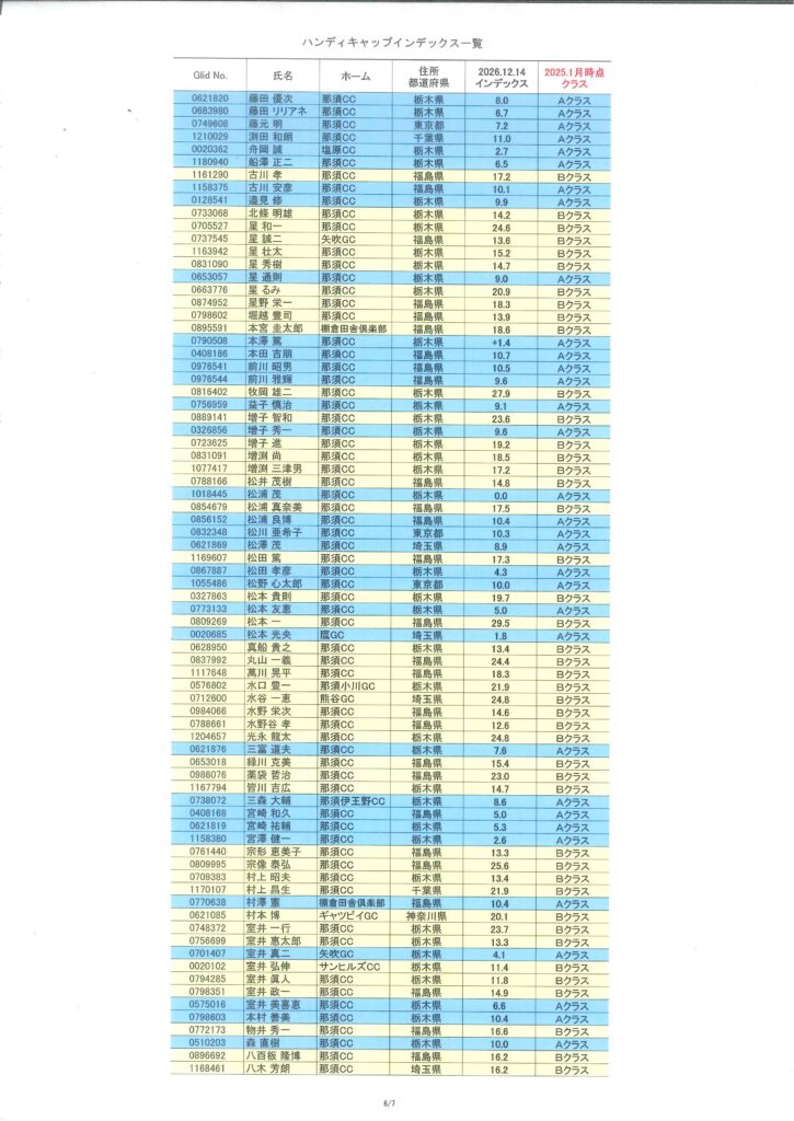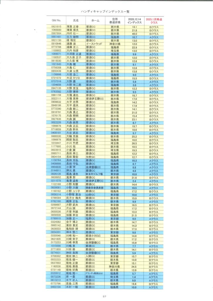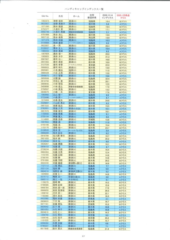 2026年1月度HDCPのお知らせ(1/1時点) 2026/01/04 【HDCP改定】 1/1時点でのHDCPは以下のようになり、 今年1月~12月までの各々のクラスとなります。 1月の月例のHDCPは、月例1週間前の16日頃に公開させていただきます。 « 前の記事一覧へ戻る