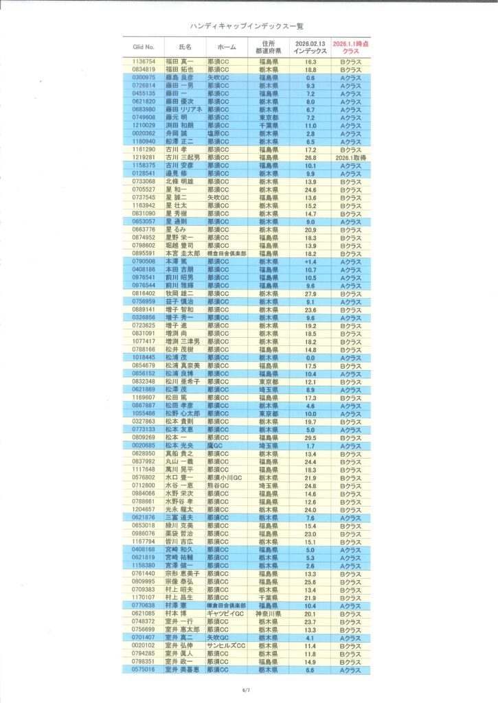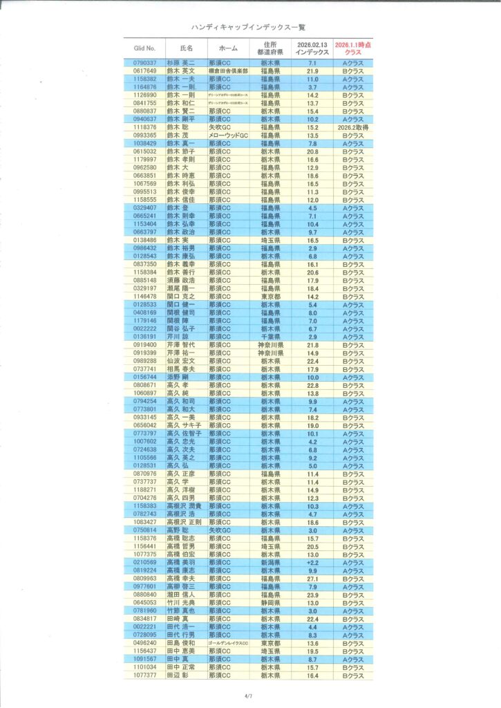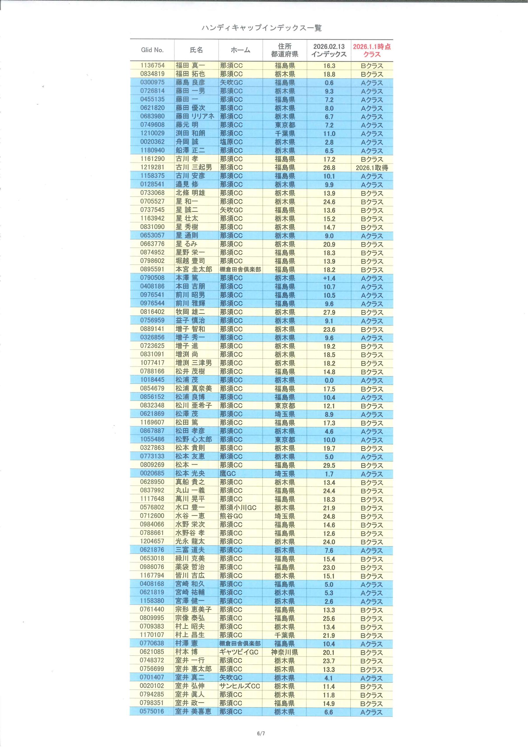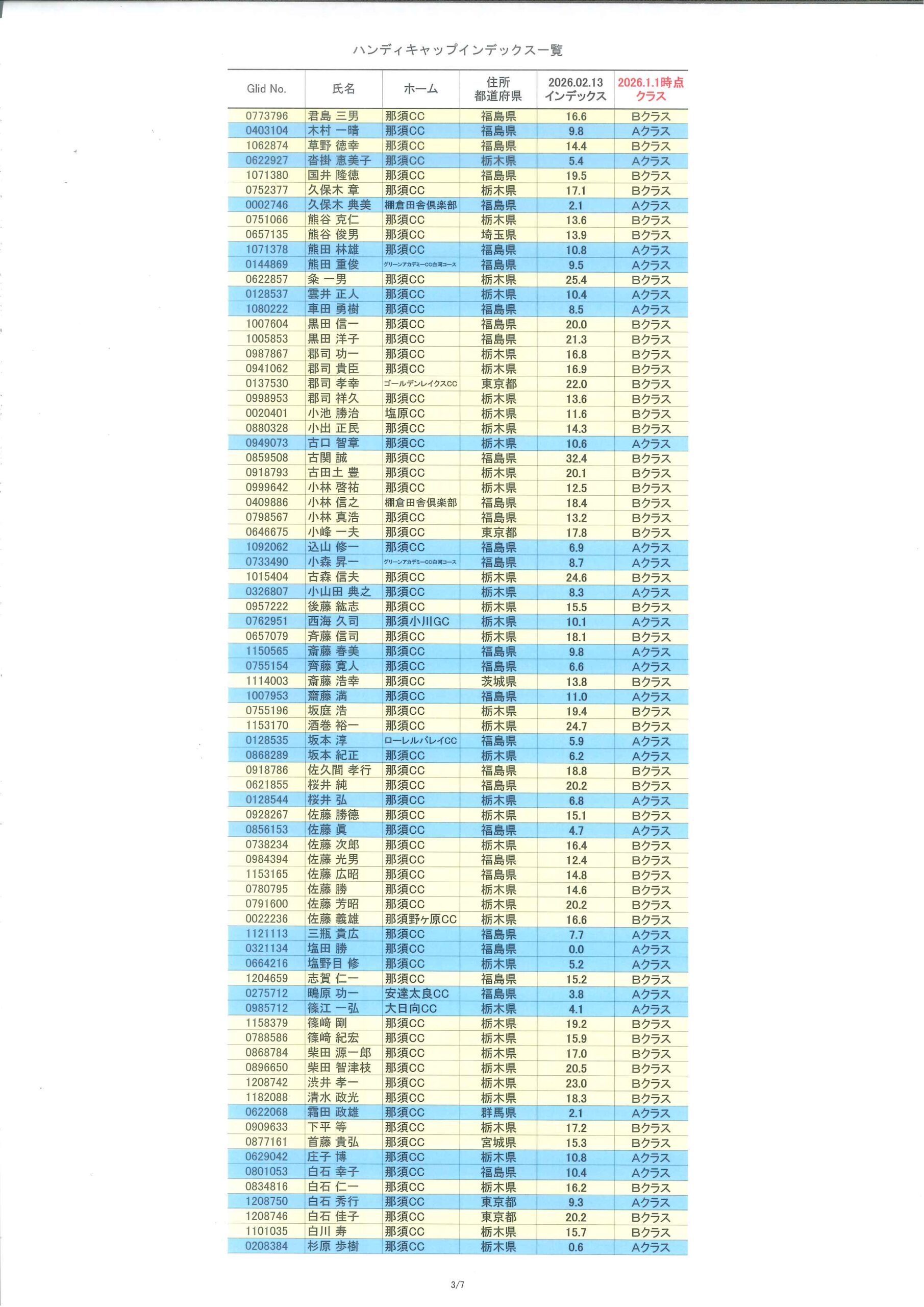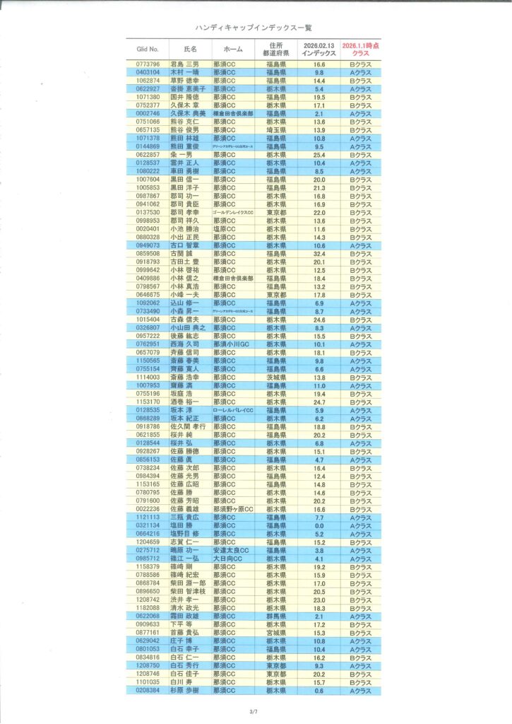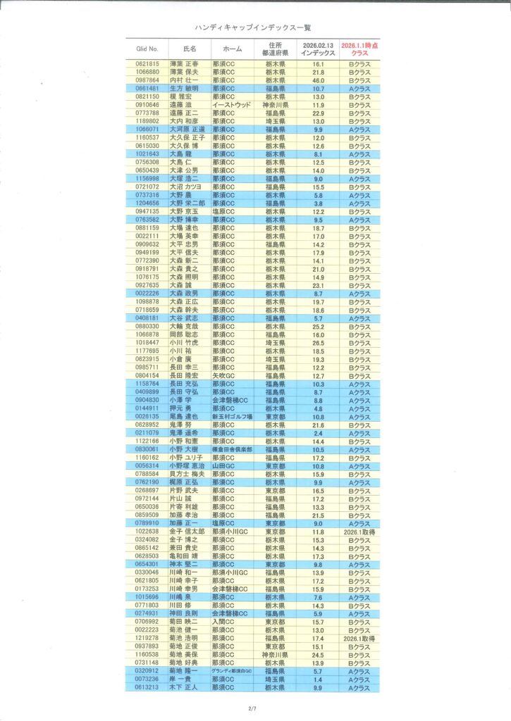 2/13時点でのHDCPは以下のようになり、2/20・2/22の月例杯のHDCPとなります。