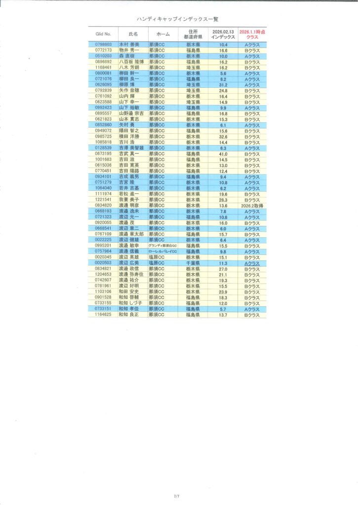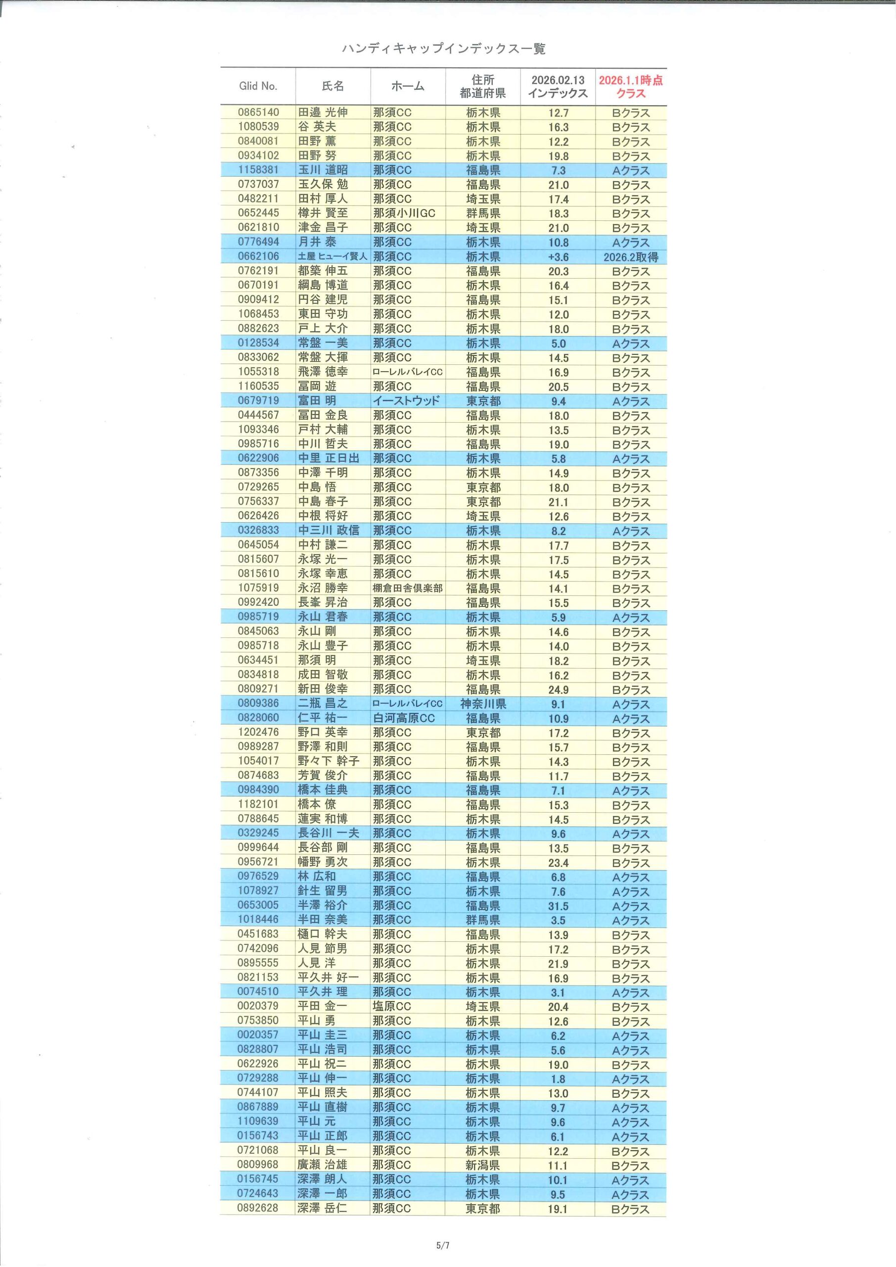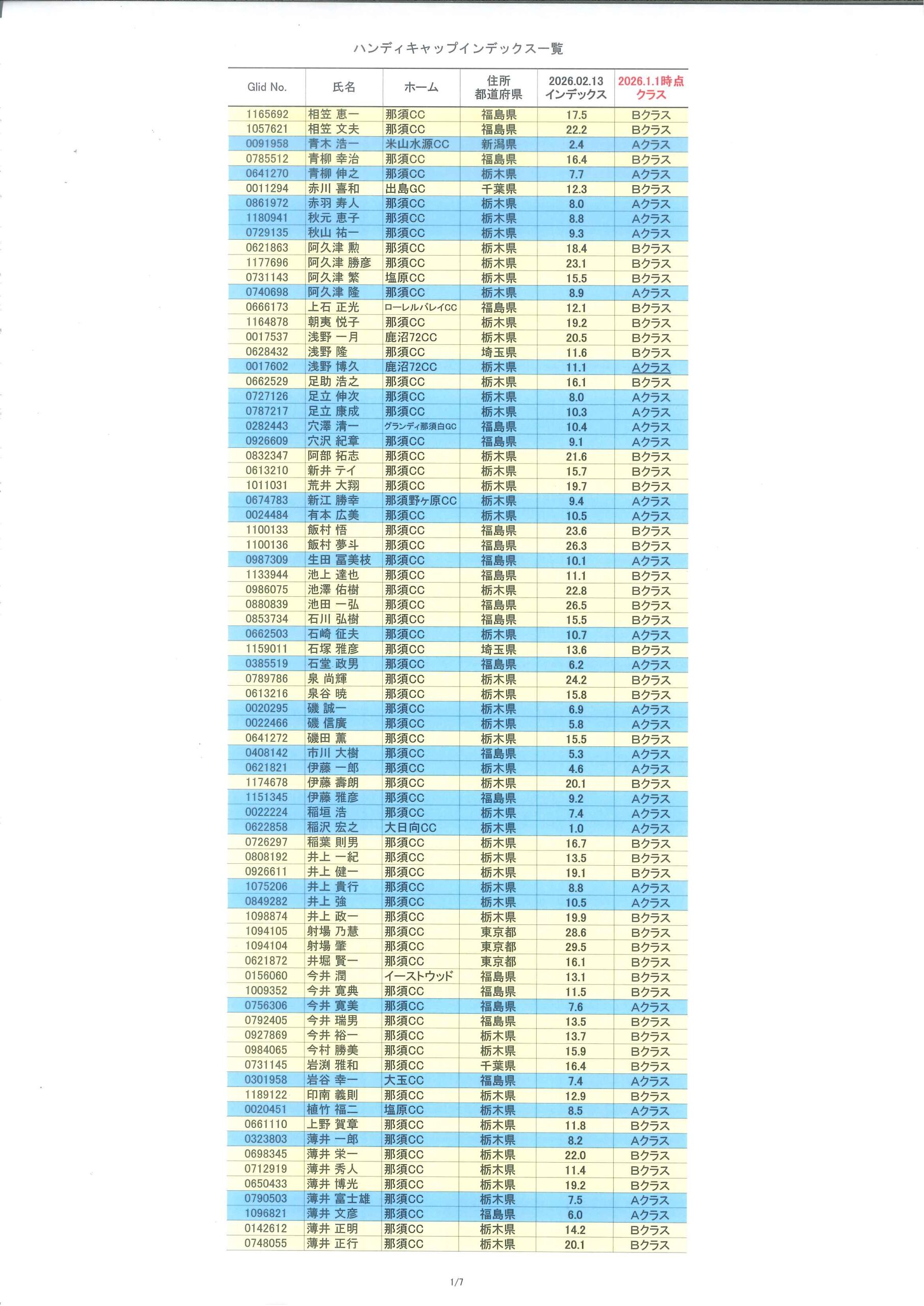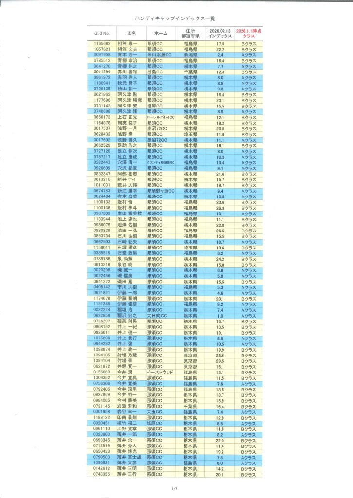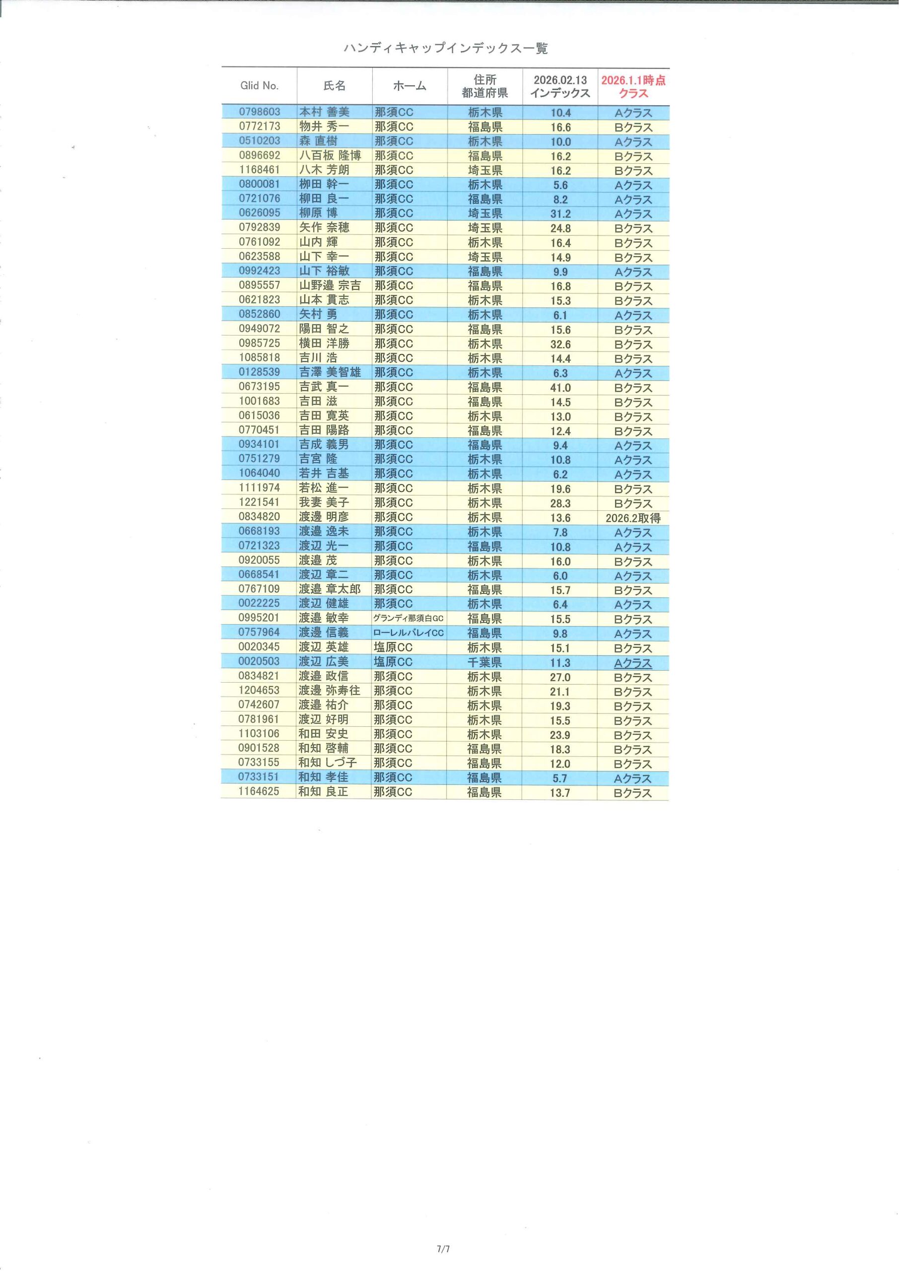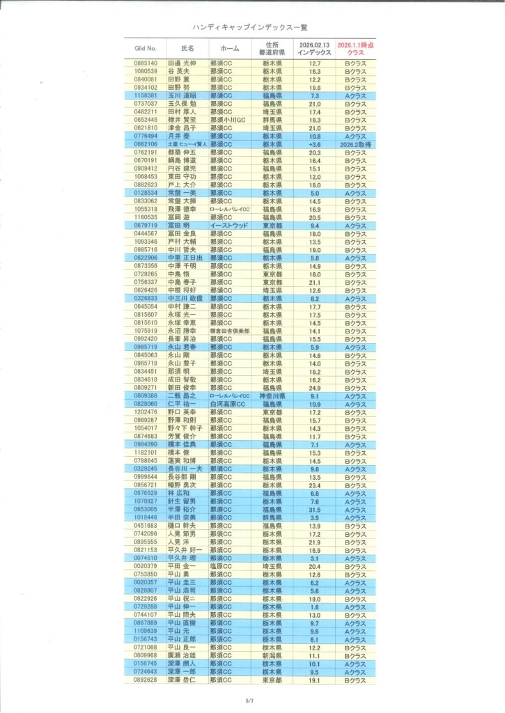2/13時点でのHDCPは以下のようになり、2/20・2/22の月例杯のHDCPとなります。